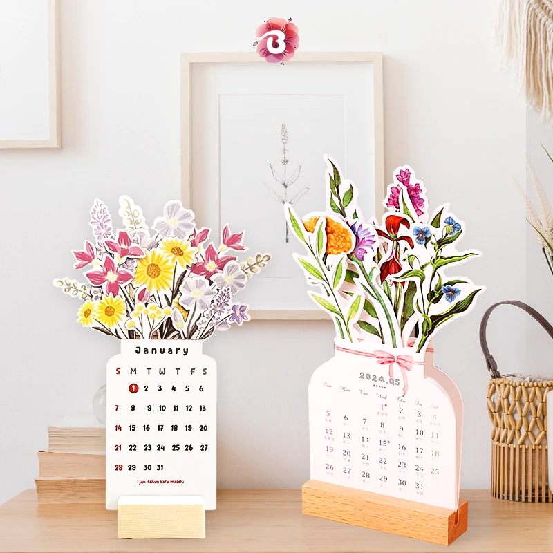 Package Includes: 1 x 2025 Bloomy Flower Calendar + Wooden Stand